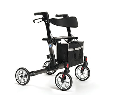 - Posiada koszyk na zakupy, uchwyt na kule,