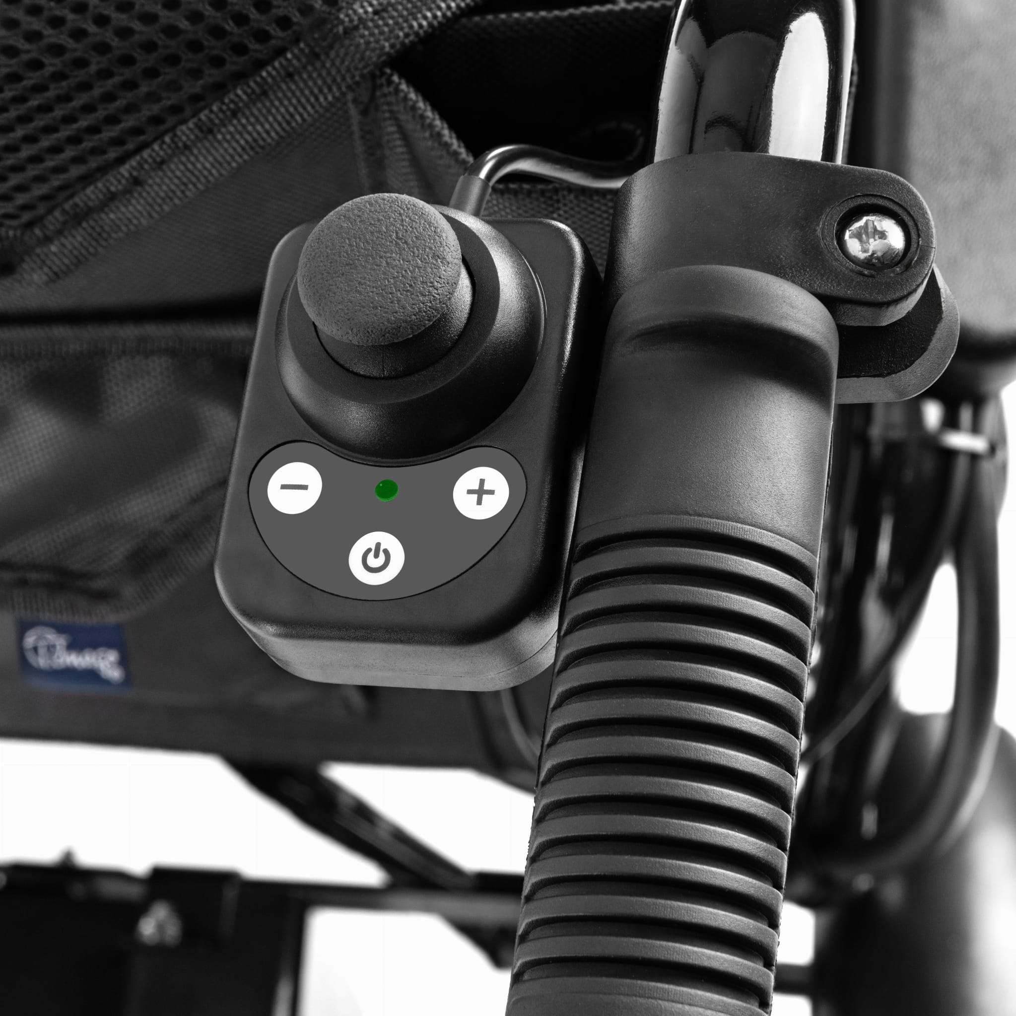 Za zaletę tego wózka należy uznać dodatkowo, podwójny system sterowania, poprzez joystick oraz adaper dla osoby prowadzącej zamontowany przy rączce dla opiekuna. Dodatkowym udogodnieniem są dwa tryby pracy: elektryczny tryb jazdy i tryb manualny umożliwający pchanie wózka. Power Tim został wyposażony w ładowarkę USB i latarkę.